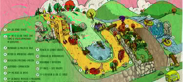 Cartilla pedagógica con juegos y aprendizajes por ciclo escolar.